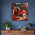 Death of Sir Tristram by Ford Madox Brown. The subject was taken from the story of Sir Tristram and La Belle Iseult as told by Malory in the 'Morte d'Arthur.' The design was originally conceived in September 1862 for a stained glass window produced by Morris, Marshall, Faulkner and Co.